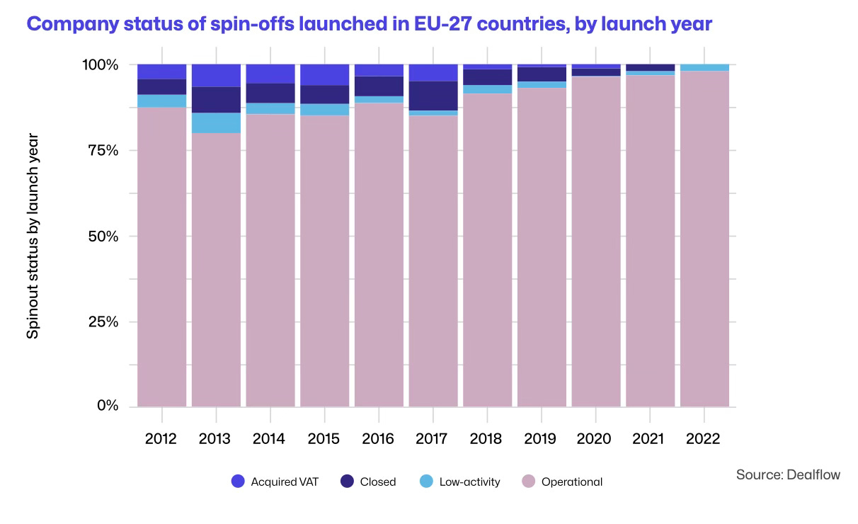 European university spin-offs show 90%+ survival but struggle to scale